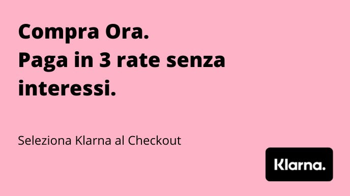 Seleziona Klarna a metodo di pagamento per pagare a 3 rate senza interesse il tuo prodotto.